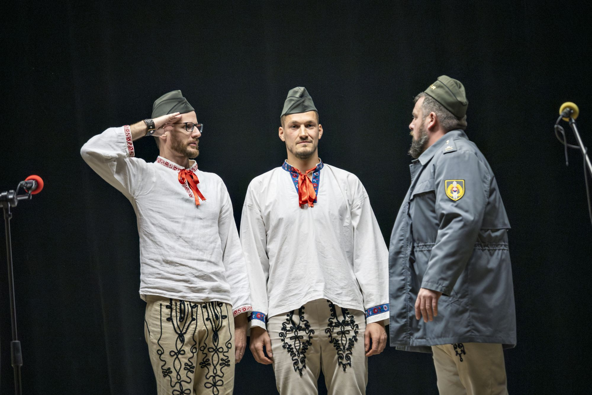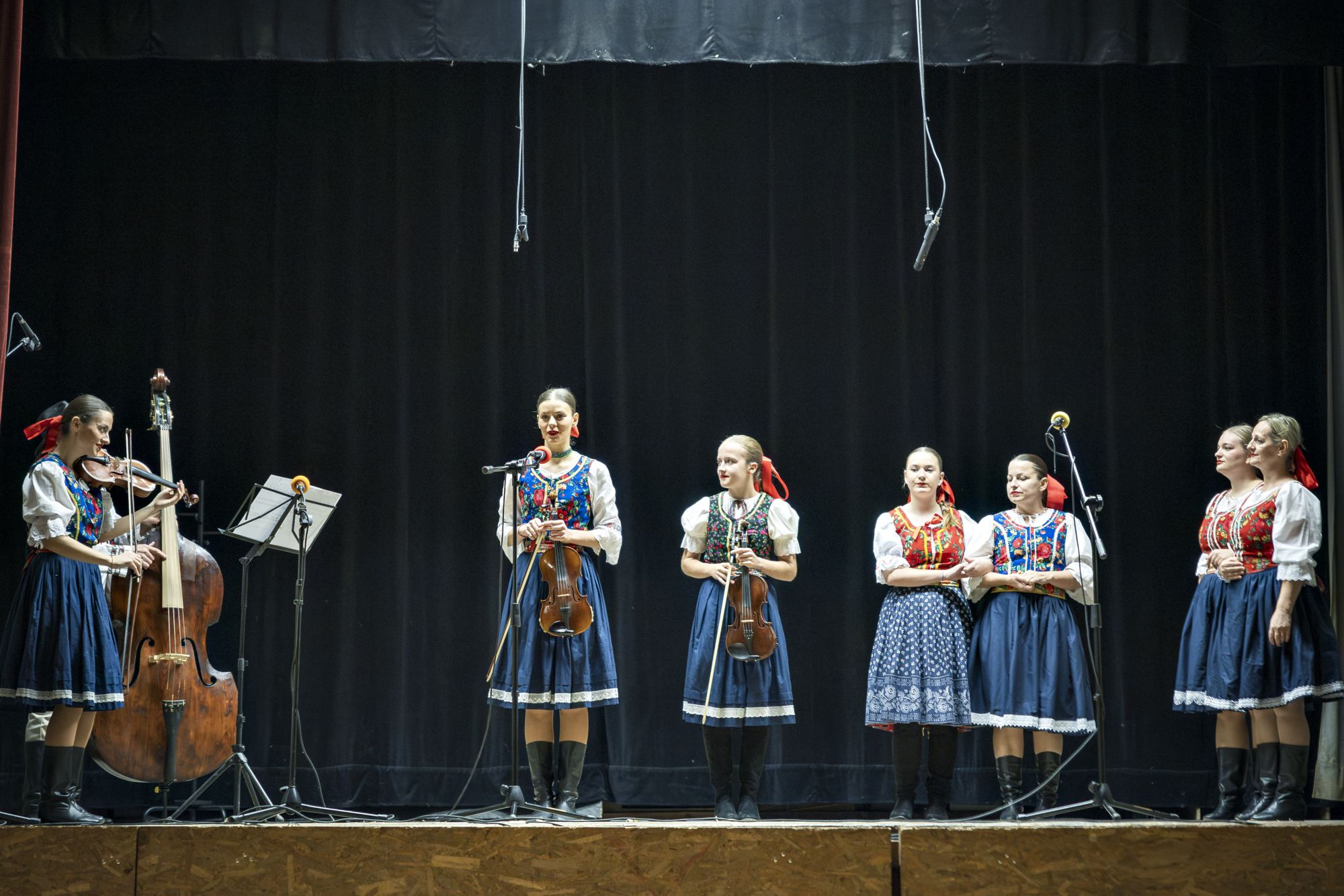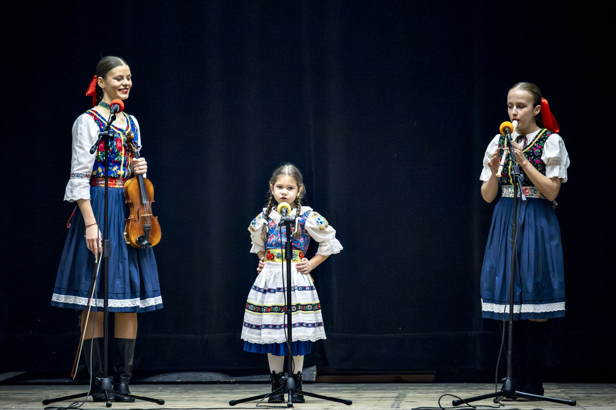 Terezka Hrebíčková, Karolínka Mikušová a Ela Sládková spoločne zaspievali obľúbenú pieseň Čie sú to húsky s doprovodom huslí a flauty.