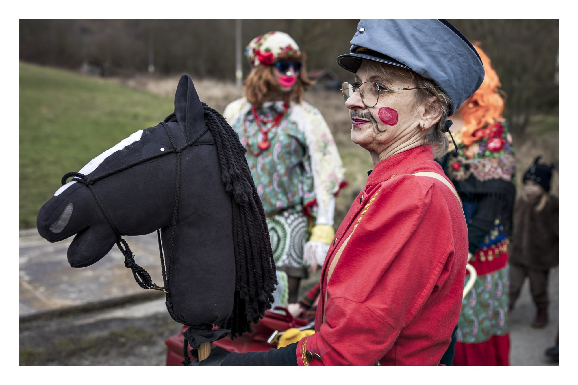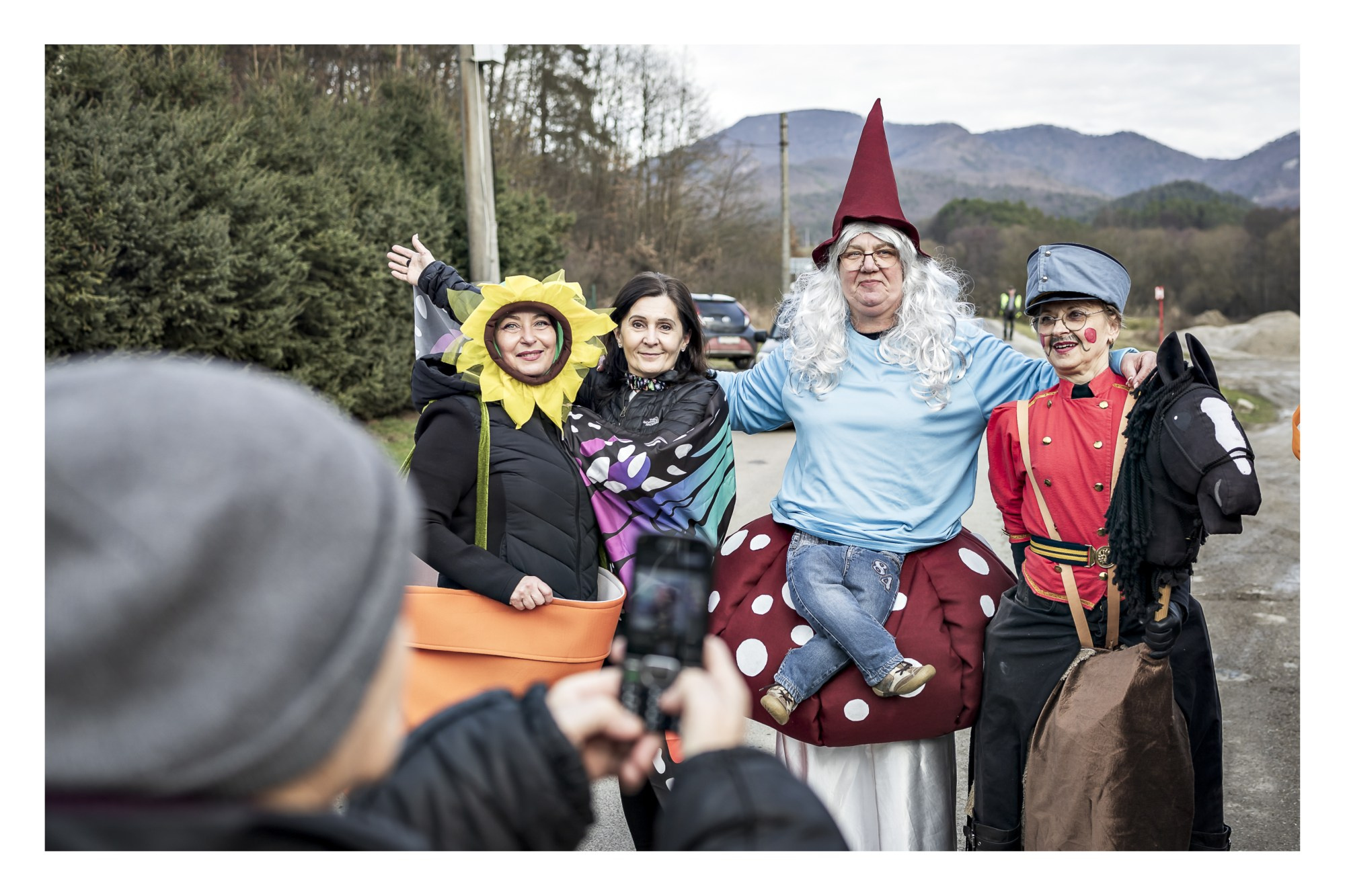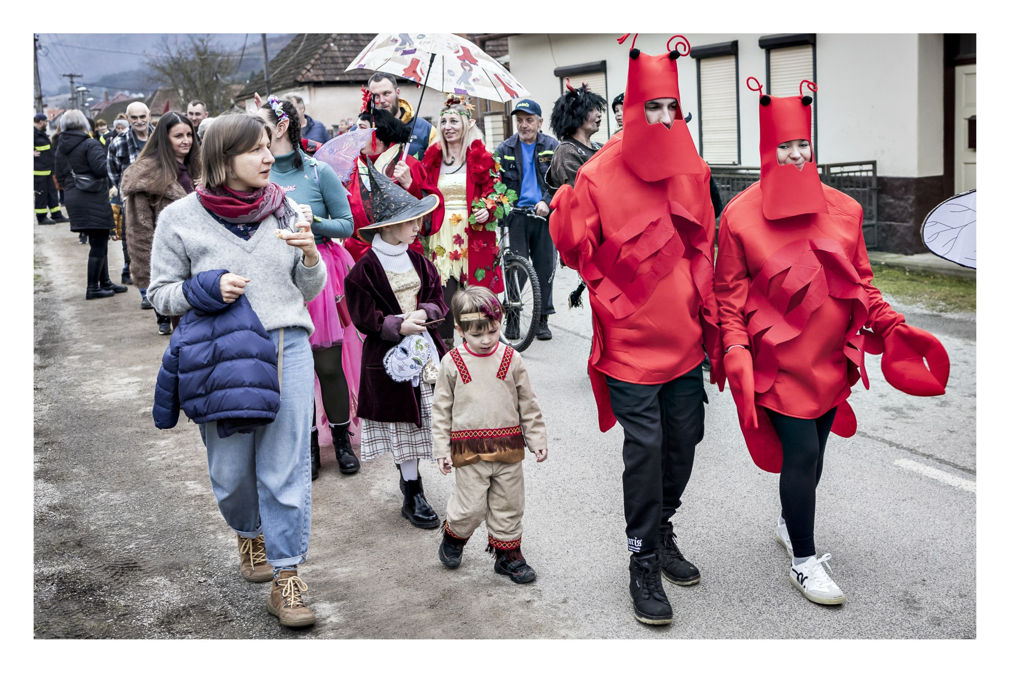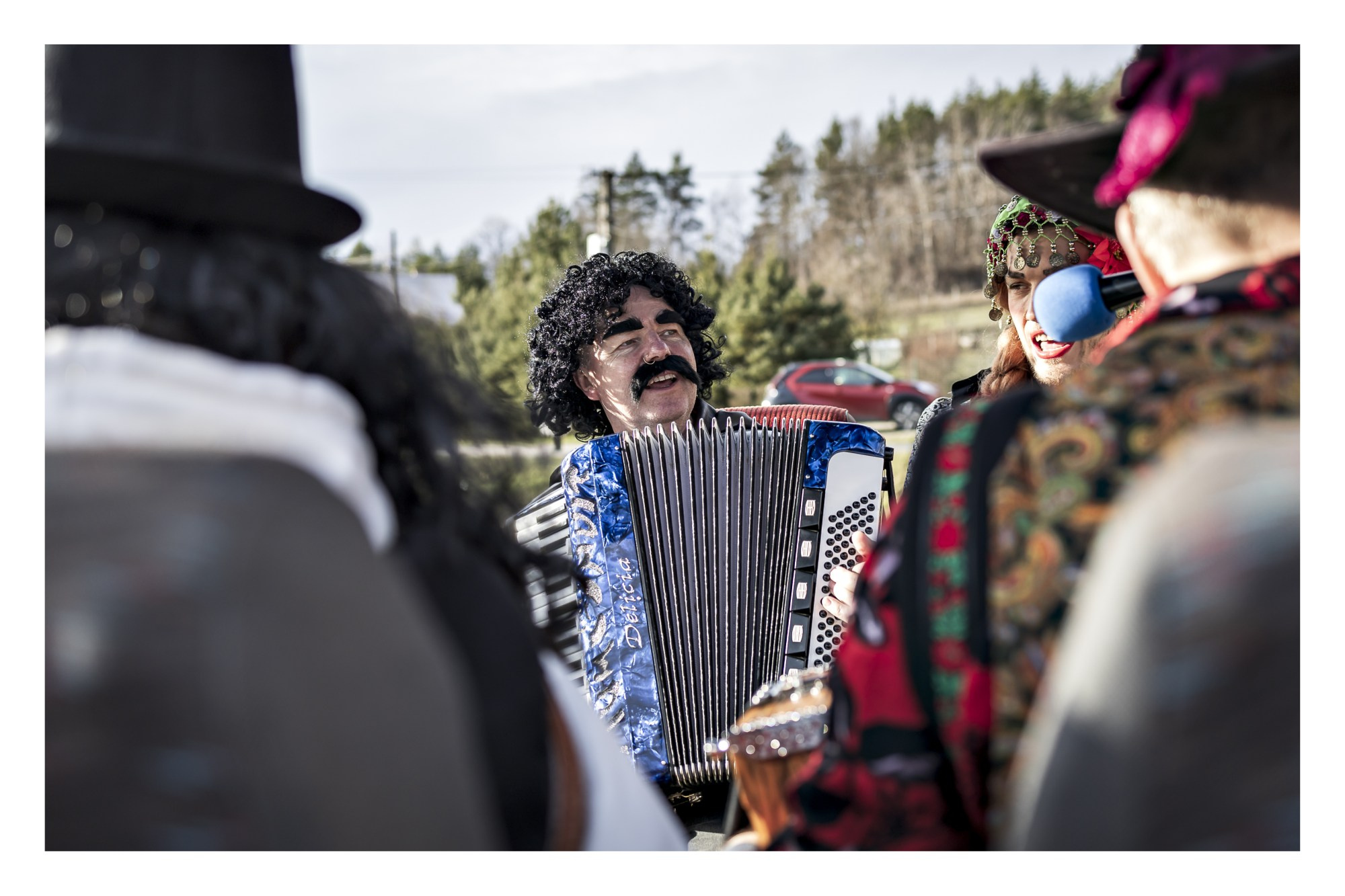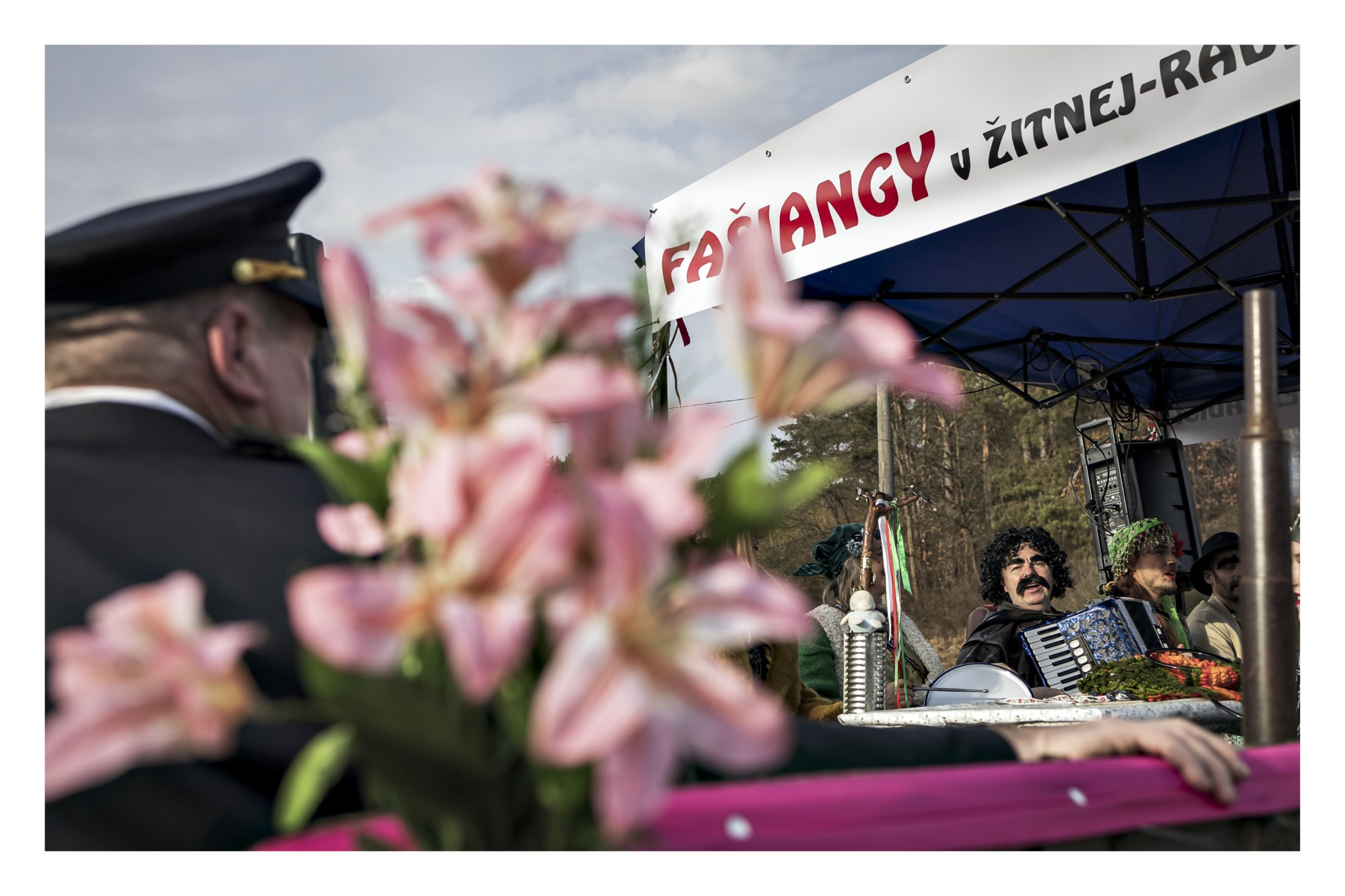 Za hudobnou vlečkou bol pripevnený ďalší unikát – dvojkolesové delo, na ktorom bola symbolicky uložená „nebožtíčka“ basa. Sprievod, v ktorom bolo možné napočítať viac ako 50 rozmanitých a doma vyrobených masiek, sprevádzali hasiči v slávnostných uniformách. Obyvatelia obce opäť ukázali svoje veľké srdce a pohostinnosť. Pri svojich bránach hostili masky tradičnými dobrotami a mnohí sa k veselému davu rovno pripojili. Osvieženie v sprievode zabezpečovali aj hasiči zo svojho nového minihasičského auta, ktoré namiesto vody rozlievalo dobrú náladu.
