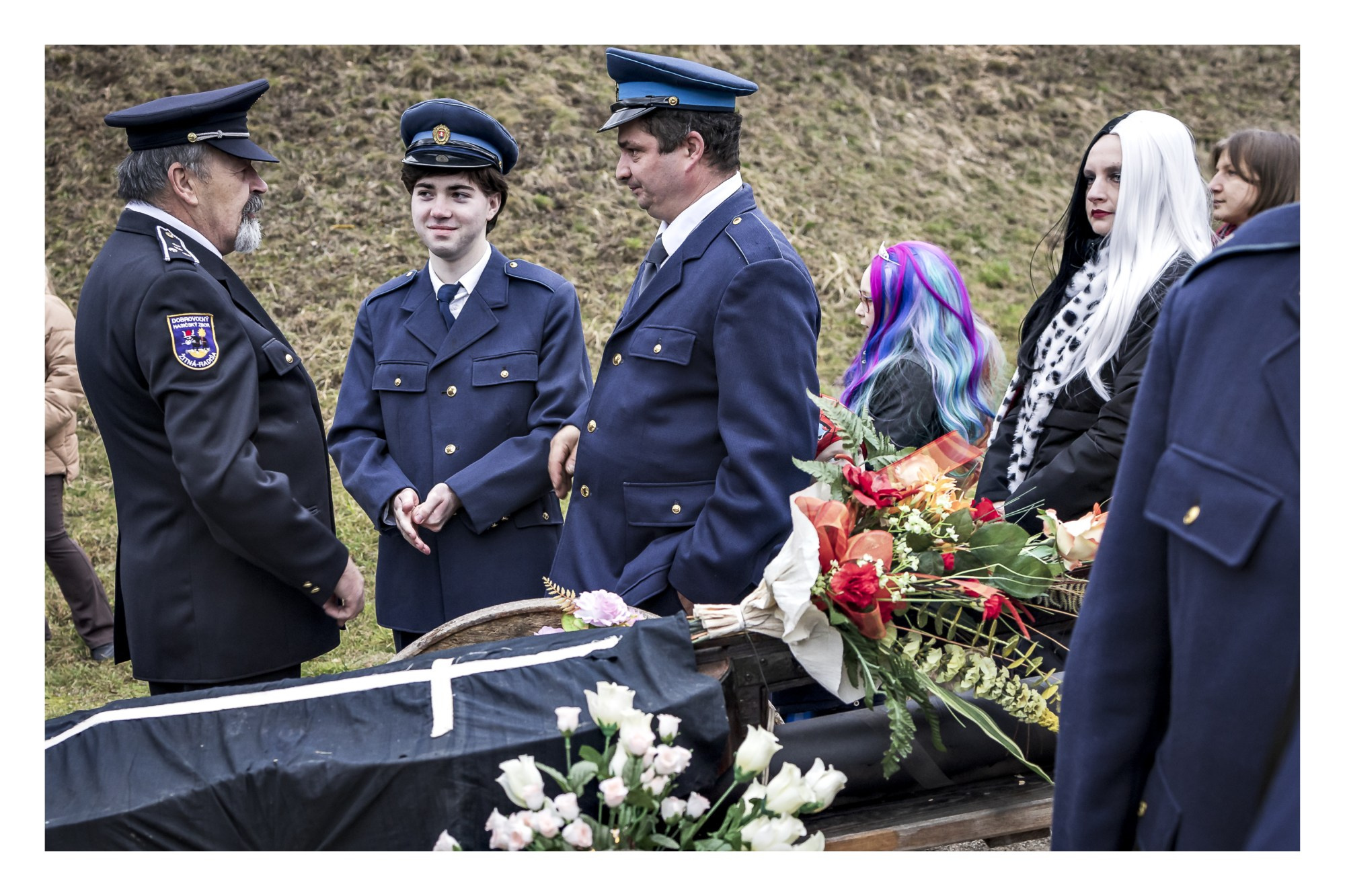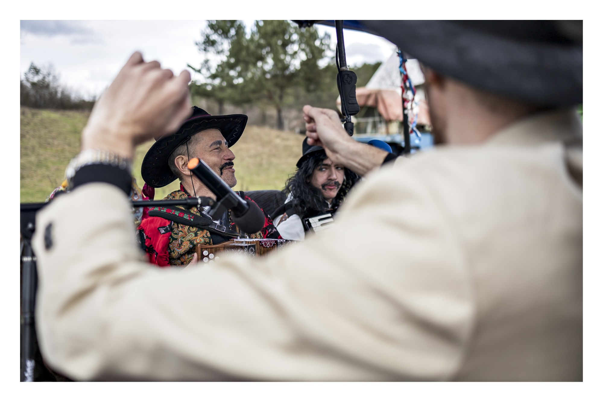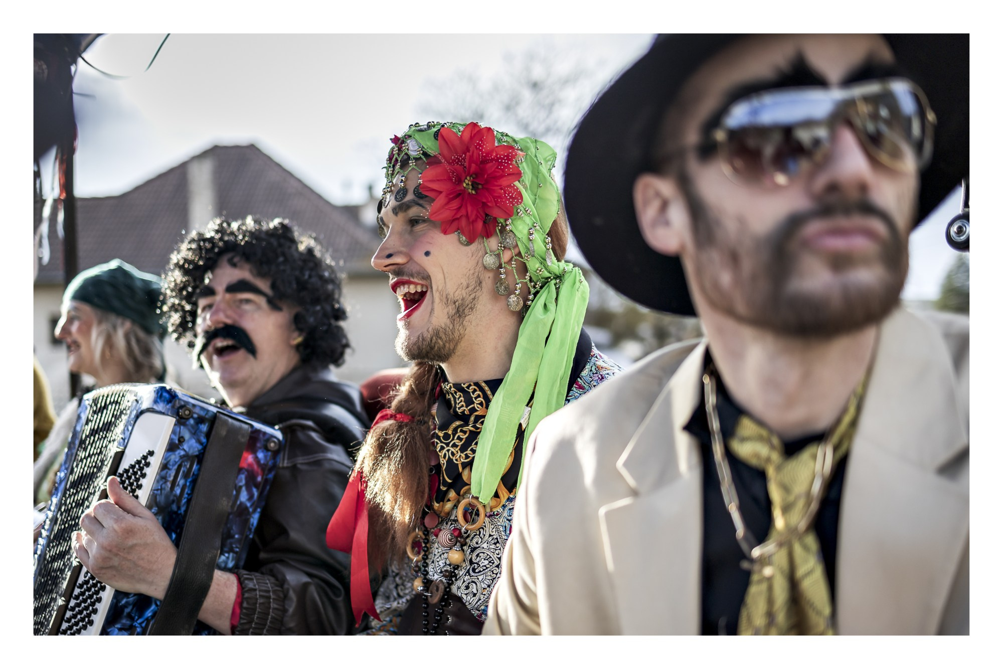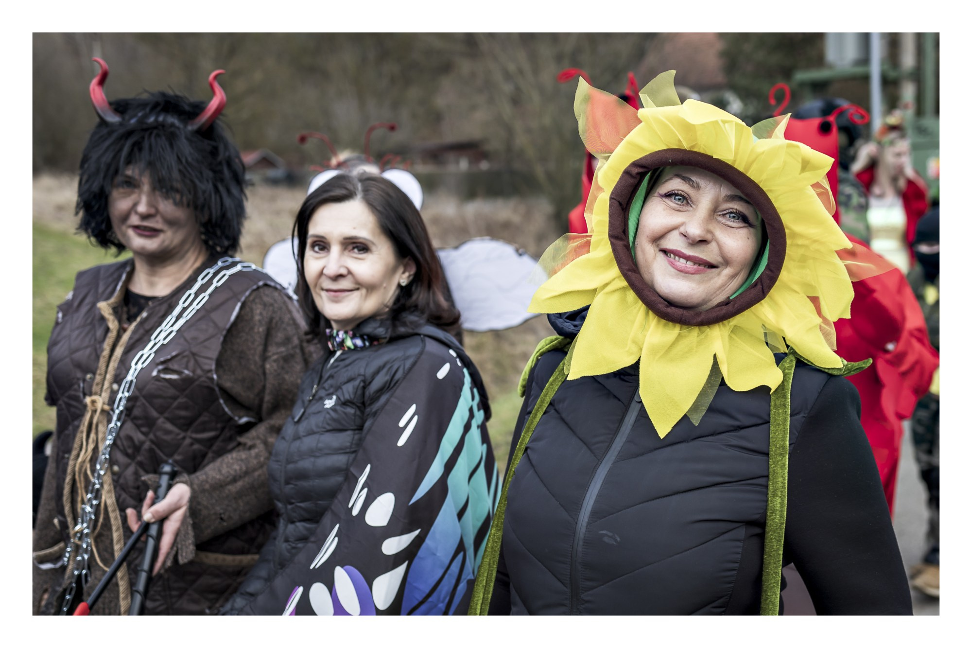 Za hudobnou vlečkou bol pripevnený ďalší unikát – dvojkolesové delo, na ktorom bola symbolicky uložená „nebožtíčka“ basa. Sprievod, v ktorom bolo možné napočítať viac ako 50 rozmanitých a doma vyrobených masiek, sprevádzali hasiči v slávnostných uniformách. Obyvatelia obce opäť ukázali svoje veľké srdce a pohostinnosť. Pri svojich bránach hostili masky tradičnými dobrotami a mnohí sa k veselému davu rovno pripojili. Osvieženie v sprievode zabezpečovali aj hasiči zo svojho nového minihasičského auta, ktoré namiesto vody rozlievalo dobrú náladu.