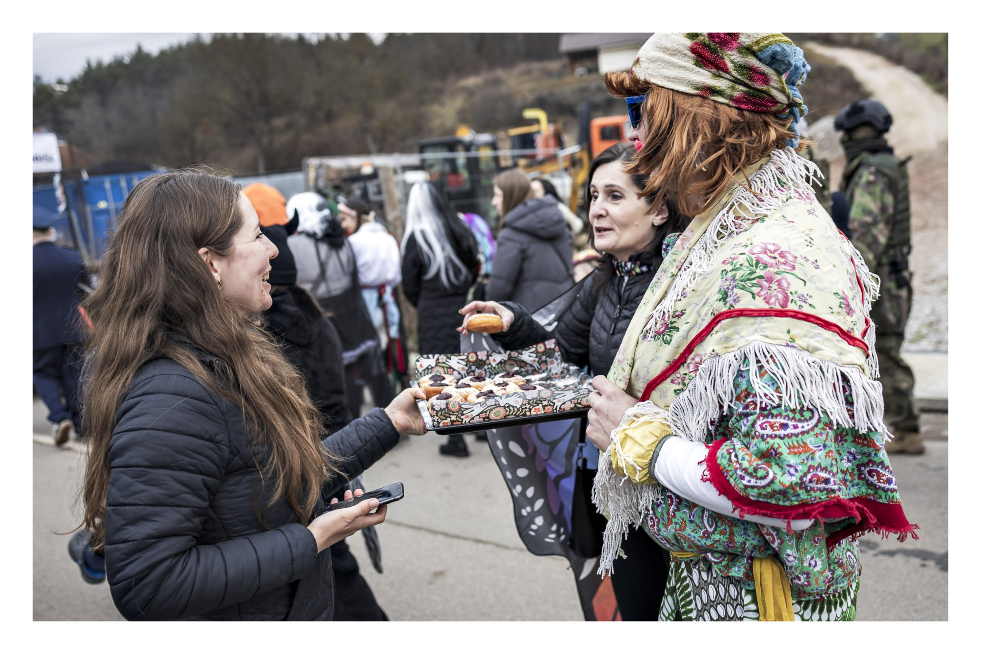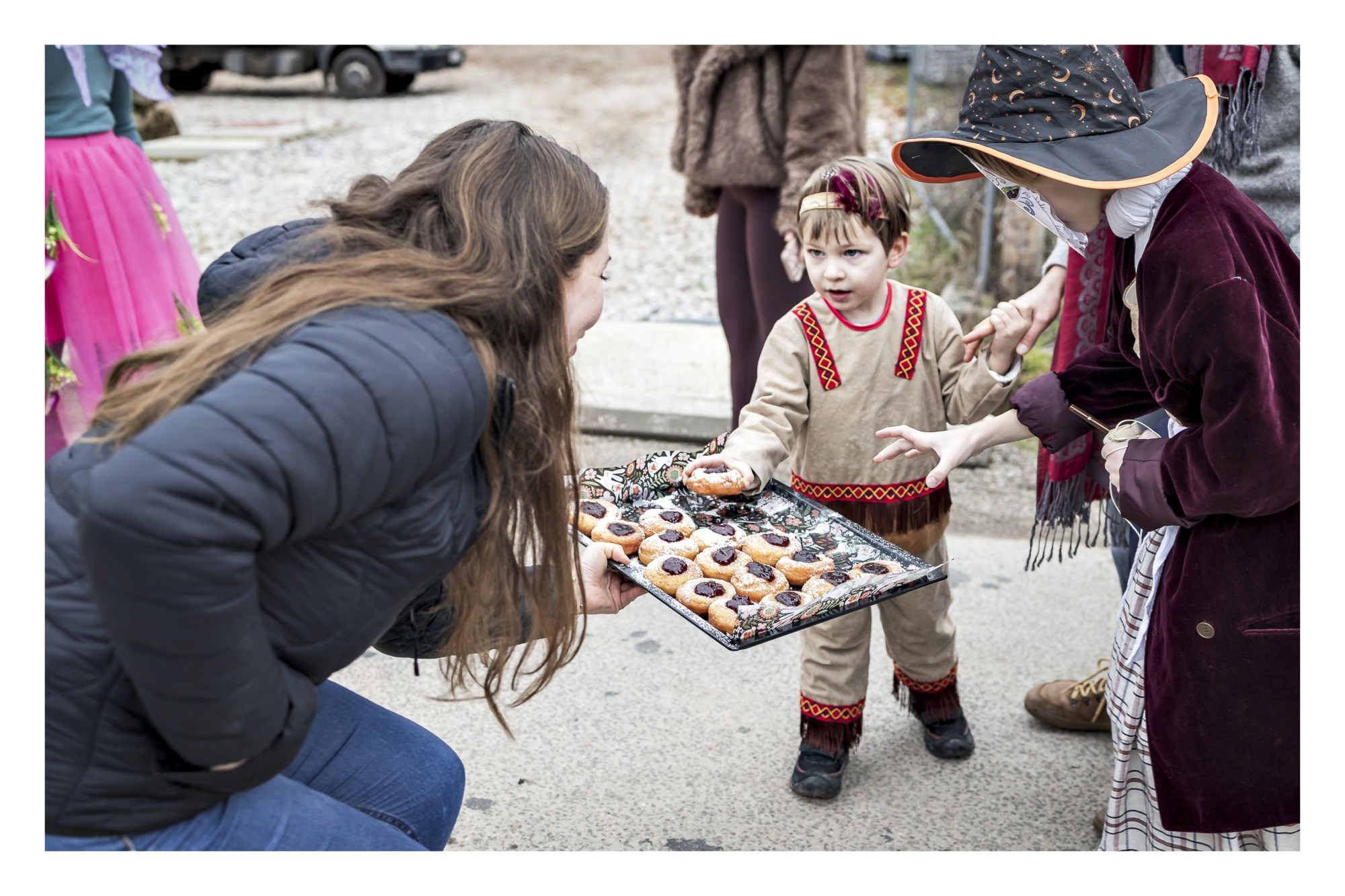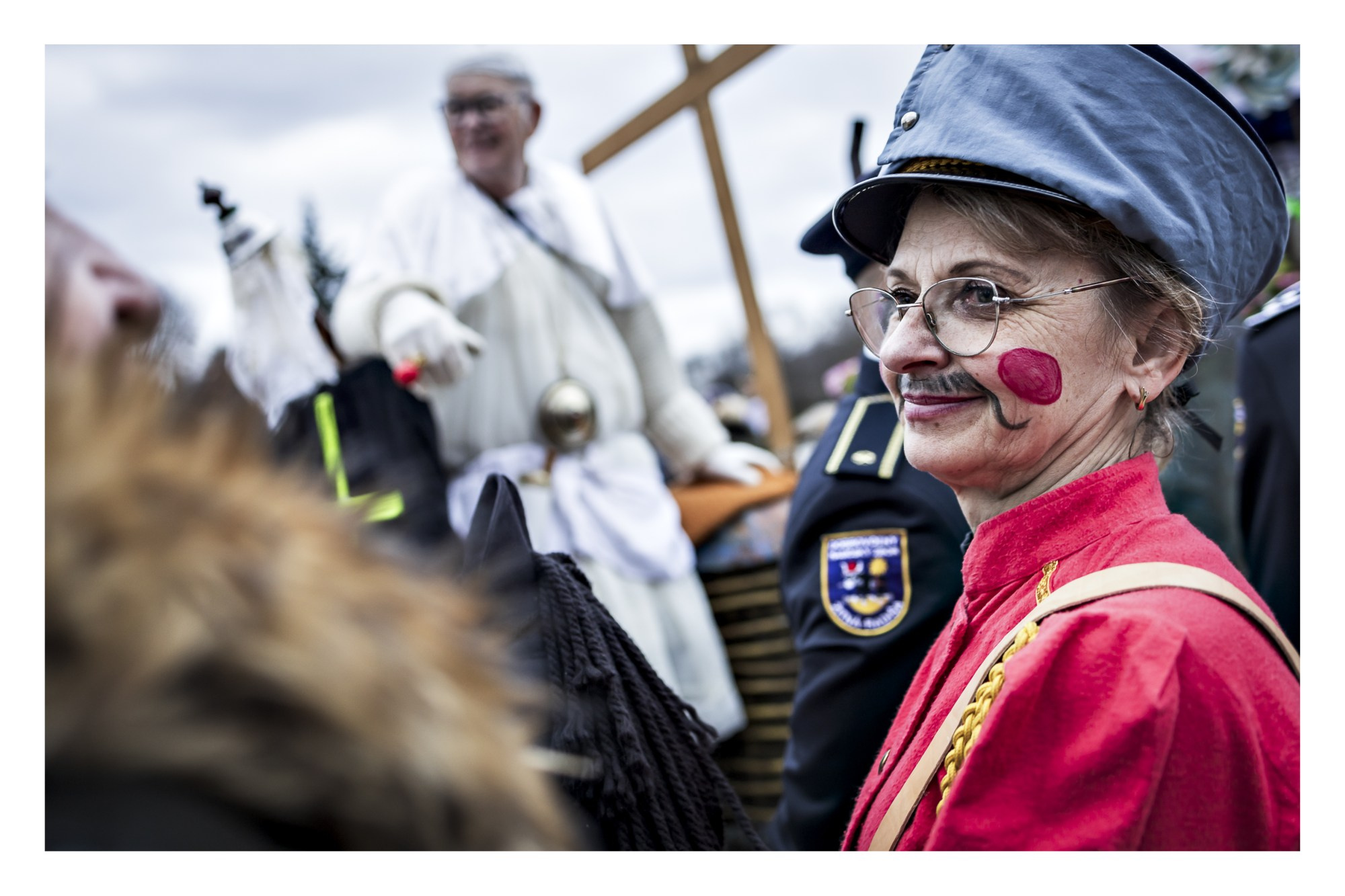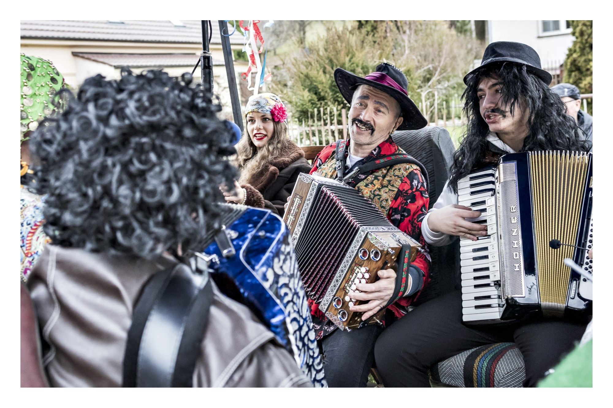 Za hudobnou vlečkou bol pripevnený ďalší unikát – dvojkolesové delo, na ktorom bola symbolicky uložená „nebožtíčka“ basa. Sprievod, v ktorom bolo možné napočítať viac ako 50 rozmanitých a doma vyrobených masiek, sprevádzali hasiči v slávnostných uniformách. Obyvatelia obce opäť ukázali svoje veľké srdce a pohostinnosť. Pri svojich bránach hostili masky tradičnými dobrotami a mnohí sa k veselému davu rovno pripojili. Osvieženie v sprievode zabezpečovali aj hasiči zo svojho nového minihasičského auta, ktoré namiesto vody rozlievalo dobrú náladu.
