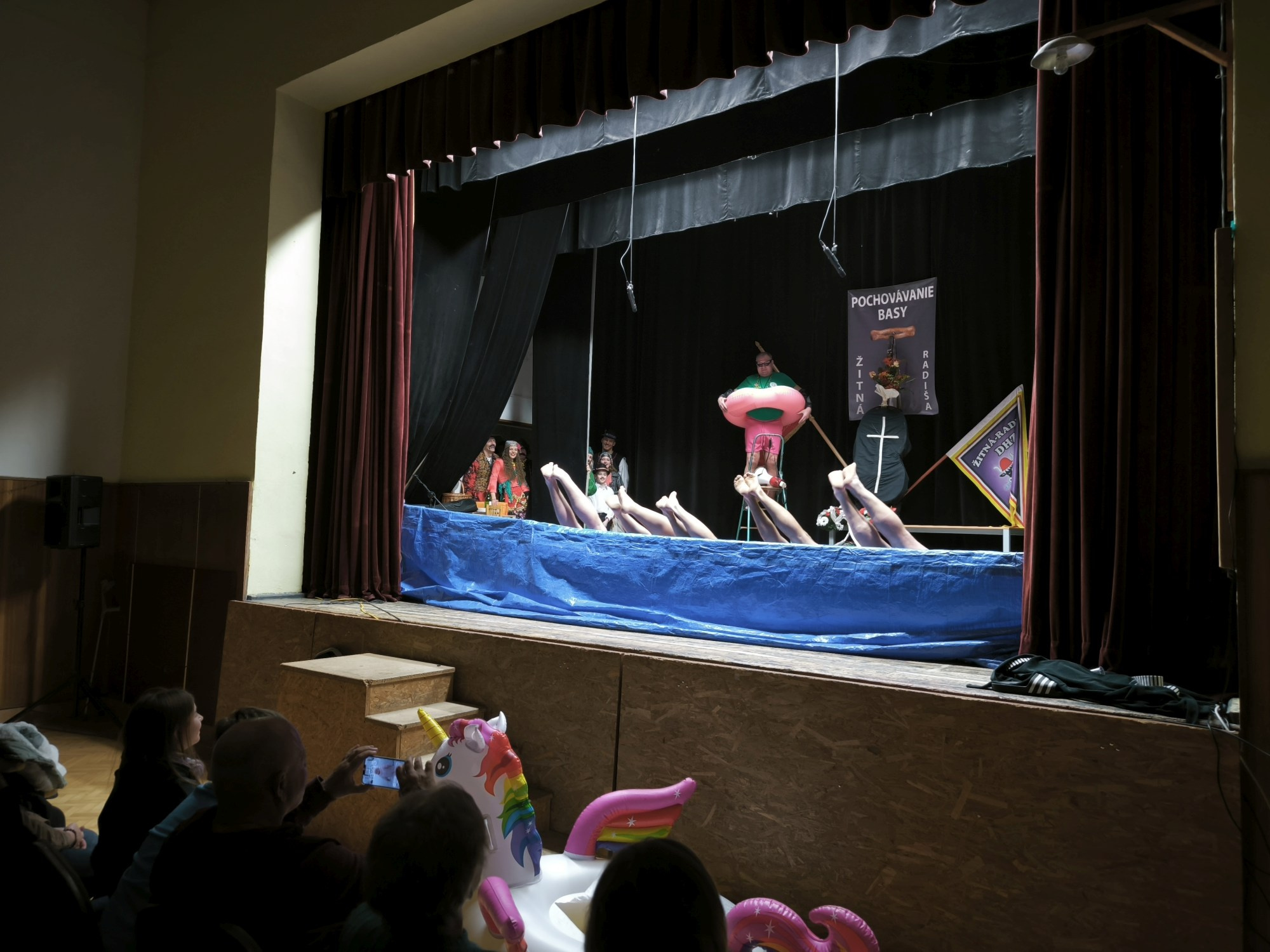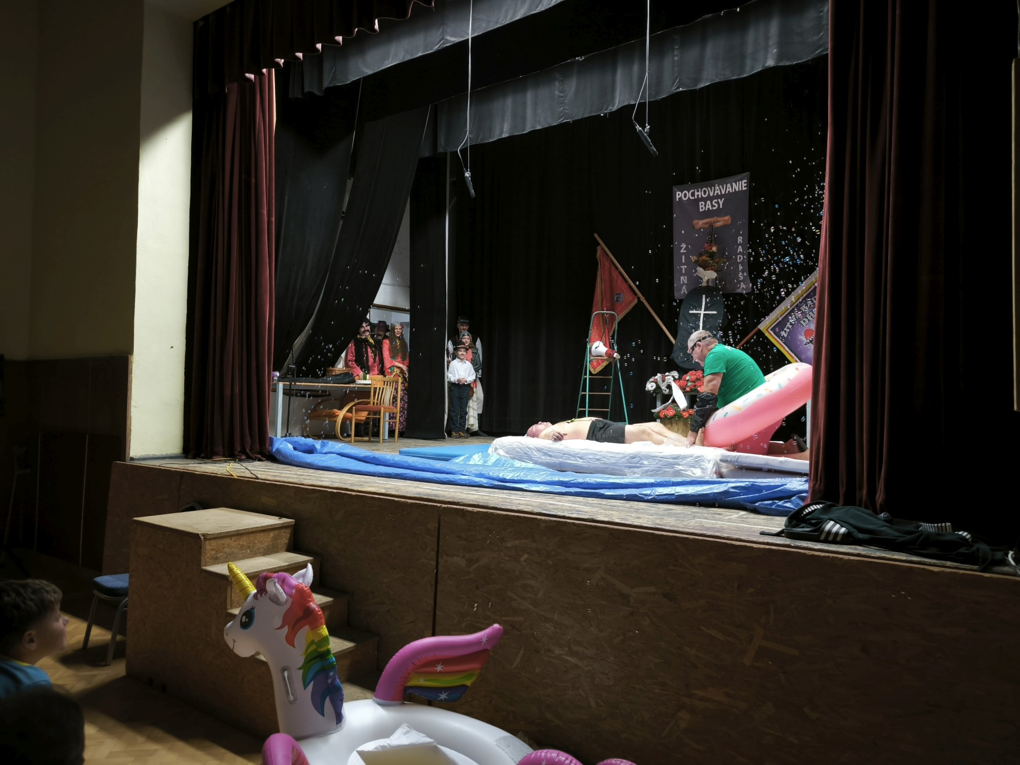 Absolútnym klincom programu sa stali hasičské „Aquabelly“, teda hasiči preoblečení za akvabely, ktorí v improvizovanom bazéne predviedli nápaditú choreografiu pod prísnym dohľadom plavčíka-neplavca. O humorné texty pri kladení vencov a na poslednej rozlúčke sa postaral „farár Voloďa“, pričom vence kládli zástupcovia jednotlivých organizácií v obci. Celú akciu hudobne aj scénicky zastrešila FSk Rozmajrín, ktorá svojím vystúpením dodala podujatiu tú pravú folklórnu bodku. Žitná-Radiša tak opäť potvrdila, že tradície sú tu stále živé a že sila komunity dokáže vytvoriť podujatie, o ktorom sa bude v regióne ešte dlho hovoriť.
