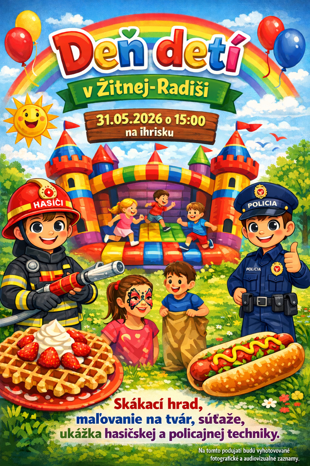 Skákací hrad, maľovanie na tvár, súťaže, ukážka hasičskej a policajnej techniky.